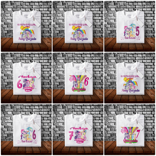 42 Diseños Plantillas Playera Cumpleaños Little Pony Editable + Png