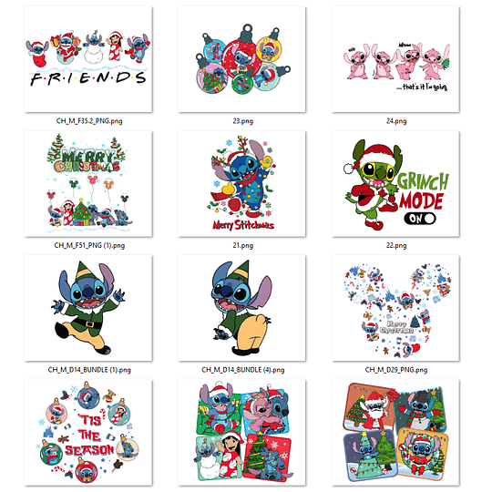 50 Diseños Plantillas Poleras Stitch Navidad Camisa Archivos Png y Editable